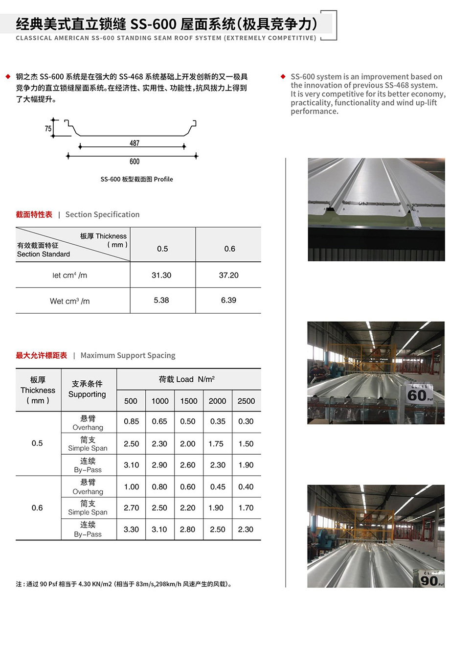 經(jīng)典美式直立鎖縫SS-600屋面系統(tǒng)(極具競爭力)