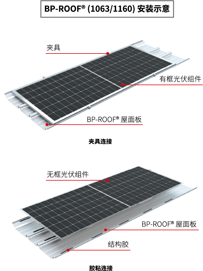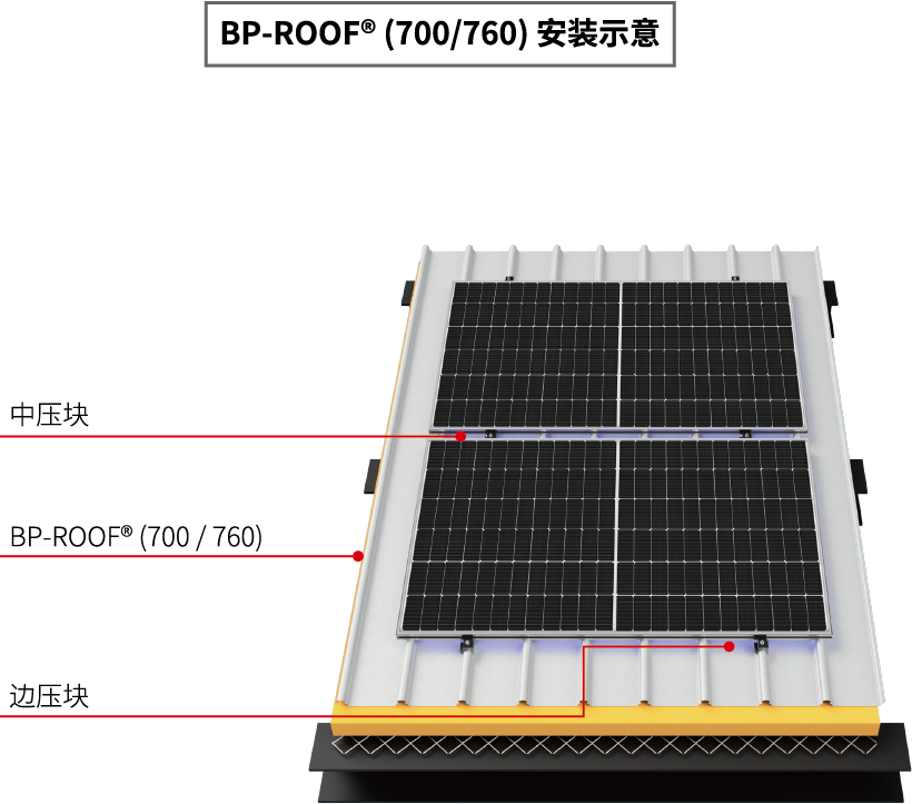 鋼之杰BP-ROOF?光伏專用底板系列:BP-1063/1160、BP-700/760,能適用于行業(yè)常規(guī) 166/182/210光伏組件,具有完善的節(jié)點(diǎn)設(shè)計(jì)和極佳的安裝方式。